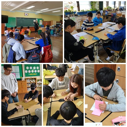 각 반 교실에서 하였고, 장애에 대한 올바른 정보를 제공하고 학생들이 간접적으로 얼마나 불편한지 시각, 지적, 지체장애인이 되어 이들이 겪는 어려움을 체험을 통해 알아보았습니다.