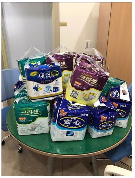 사고로 와상환자가 된 아들에게 사용해야할 성인용 기저귀를 아끼고 모아서 20팩을 복지관에 후원을 하였습니다. 벌써 3번째 기저귀 후원을 하시며 아들의 몫으로 후원을 할 수 있음에 감사한다며 행복해 하셨답니다.