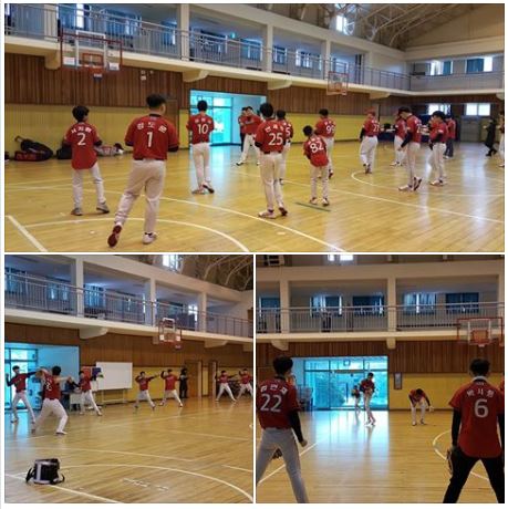 ET 야구단 2월 13일 광주교대 체육관에서 훈련 진행