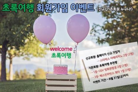 8월 초록여행 홈페이지 회원가입 이벤트를 시작합니다