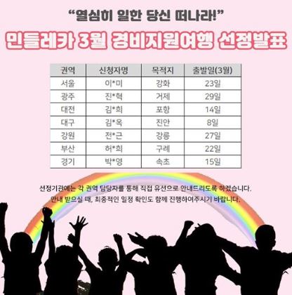 민들레카 3월 경비지원여행 선정기관 발표!