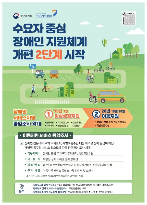 수요자 중심 장애인 지원체계 개편 2단계가 시작되었으니, 다음을 참고하시어 읍,면,동 주민센테에 신청하시기 바랍니다.
