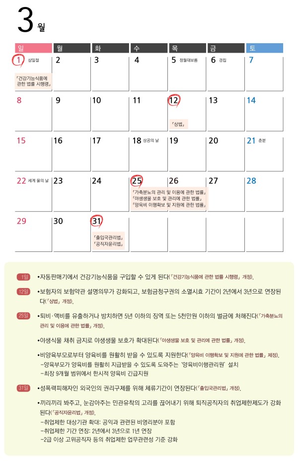 복지정보 3월에 새로 시행되는 법령을 알려드립니다.