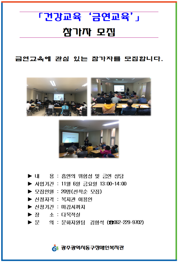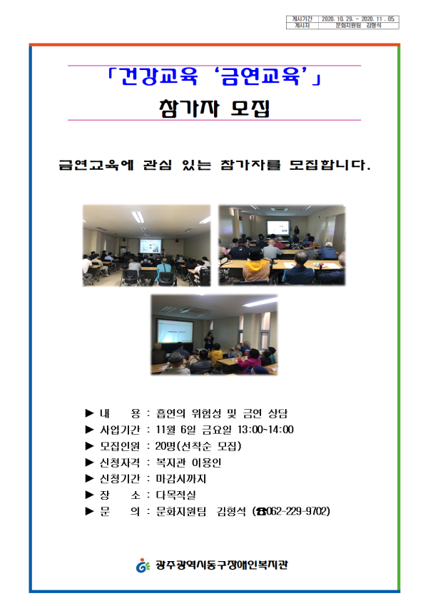 2020년 건강교육 "금연교육" 을 진행하고자 합니다.