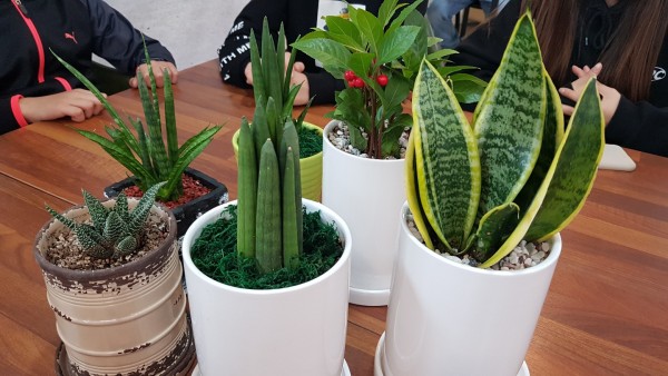 광주서석초등학교 학생들(박건우 외 5명)과 선생님(임소연)께서 직접 심고 키운 화분을 들고 복지관을 방문하였습니다.