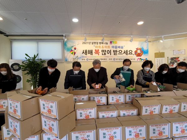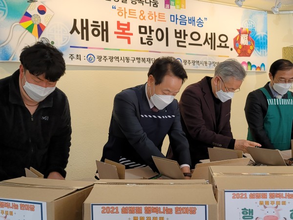 복지관을 운영하는 동구행복재단 이사장이신 임택 동구청장님과 복지관 전직원이 정성스레 포장한 명절 선물꾸러미는 2월 8일부터 9일, 양일간 지역 장애인 가정 320세대에 배송되었습니다.