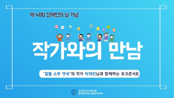 작가와의 만남[제 41회 장애인의 날 행사 4편] 게시글 작성정보 작성자 기획홍보팀 작성일 21-04-21 17:30 조회수 1,715 댓글수 0 목록 게시글 본문 제 41회 장애인의 날 기념 시집 '칠월 스무 엿새'의 작가 박재민 시인과의 만남 아래 이미지를 클릭하면 관련 영상을 시청할 수 있습니다. 첨부파일 1개 유튜브썸네일(작가와의 만남).jpg (132.4K) 2회 다운로드 첨부일시 : 2021-04-21 17:30:00 이전글 조선대학교 특수교육과 ‘장애인 차별 철폐의 날’ 작품 기증식 21-04-22 다음글 인문학 콘서트[제 41회 장애인의 날 행사 3편] 21-04-21 댓글 0 등록된 댓글이 없습니다. 목록