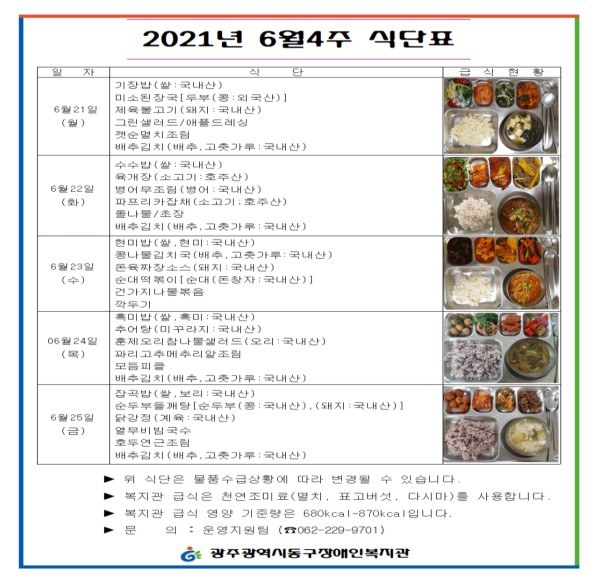2021년 6월 4주 식단표 게시글 작성정보 작성자 류현진 작성일 21-06-21 08:11 조회수 1,637 댓글수 0 목록 게시글 본문 첨부파일 2개 06.21~06.25..png (40.3K) 3회 다운로드 첨부일시 : 2021-06-21 08:11:00 06.21~06001.png (661.3K) 3회 다운로드 첨부일시 : 2021-06-21 08:11:00 이전글 2021년 6월 5주 식단표 21-06-28 다음글 2021년 6월 3주 식단표 21-06-15 댓글 0 등록된 댓글이 없습니다. 목록