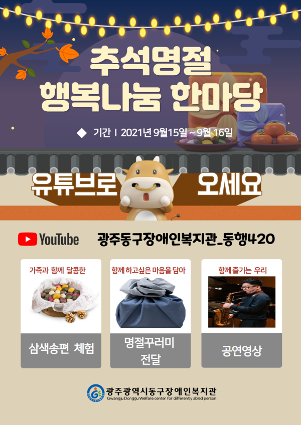 추석기간동안 동구장복 유튜브에서 추석명절 행복나눔 한마당 소식을 함께 즐겨요!
