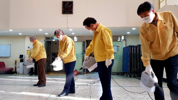 특히 27일(월)에는 동구행복재단 이사장이신 임택 동구청장님과 김병규 대표이사님께서 직접 소독기를 들고 방문하셔서 복지관 구석구석을 소독해 주셨습니다.