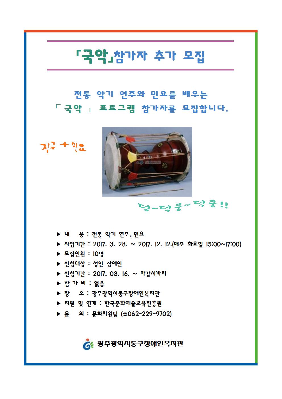 전통 악기 연주와 민요를 배우는 「국악」프로그램 참가자를 모집합니다.