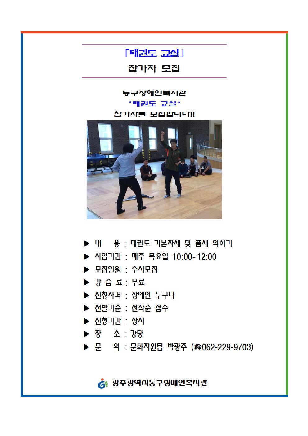 동구장애인복지관 '태권도 교실' 참가자를 모집합니다!!