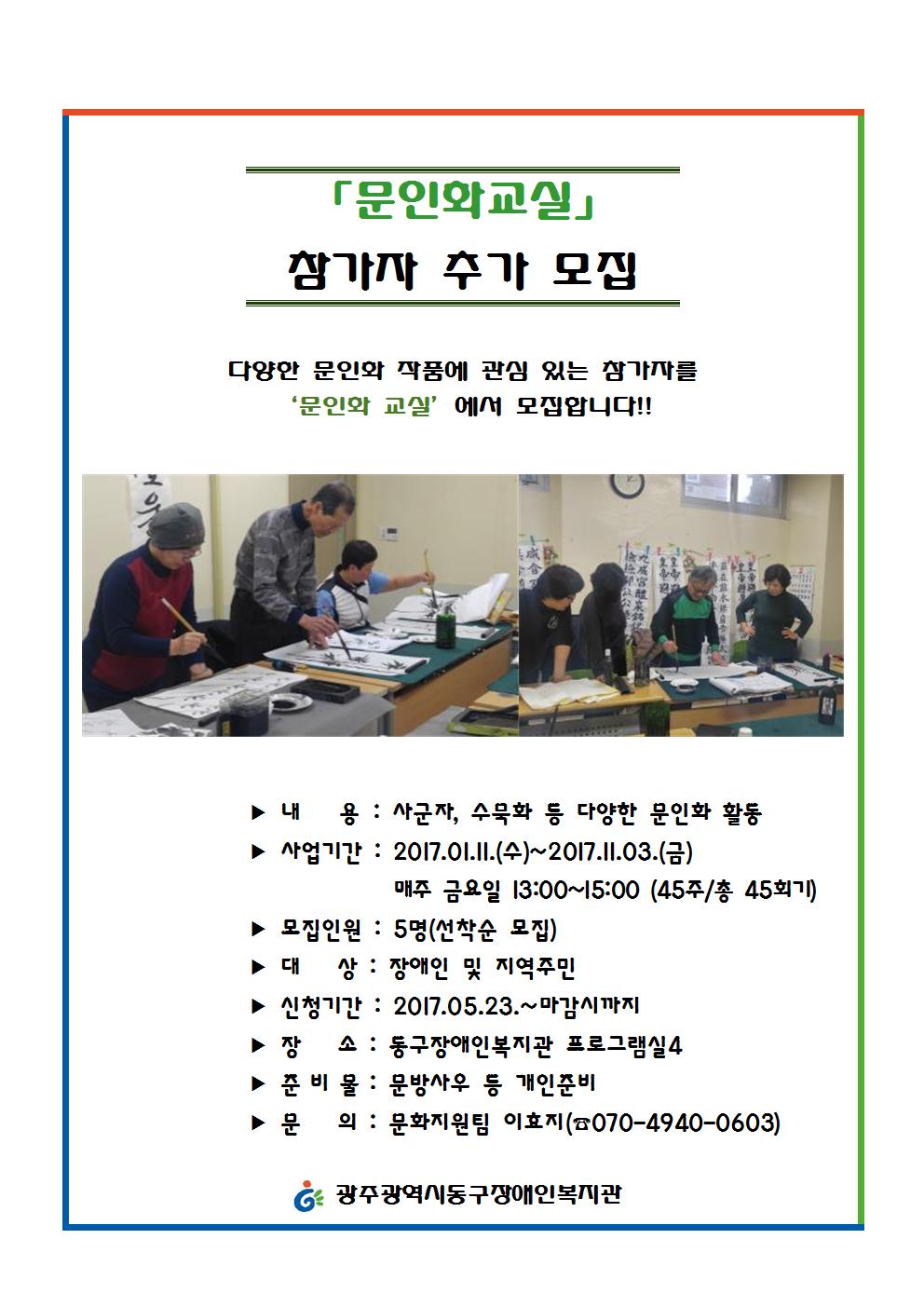 문인화교실 참가자 추가 모집