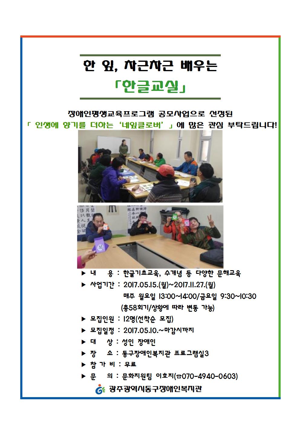 <한글교실> '인생에 향기를 더하는 네잎클로버' 안내