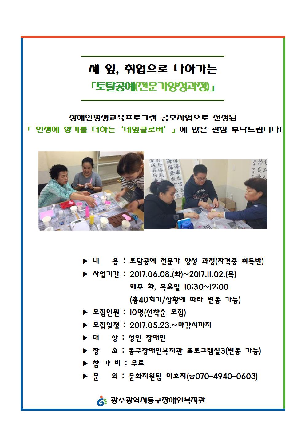 - 내 용: 토탈공예 전문가 양성 과정(자격증 취득반)