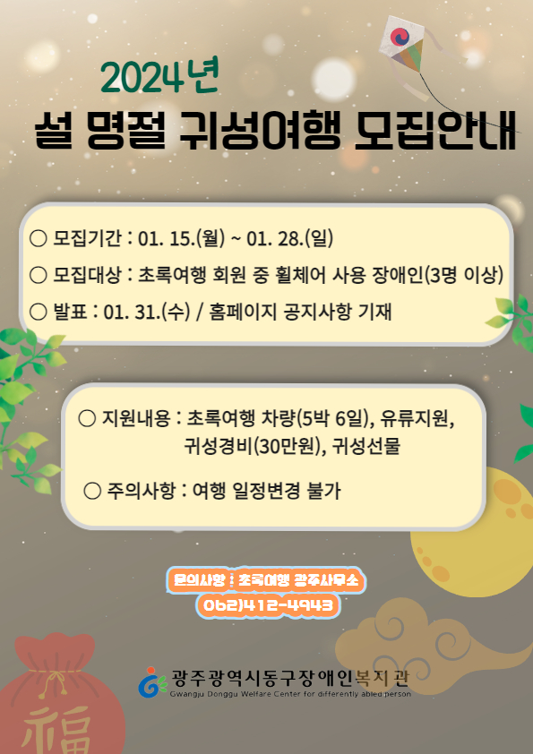 초록여행 2024년 설 명절 귀성여행 참여자를 모집합니다.