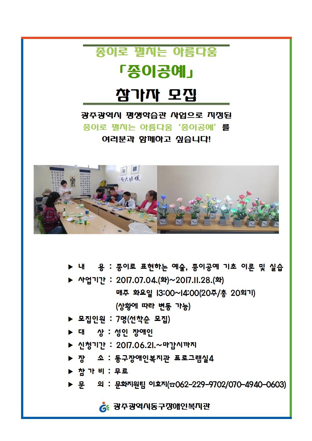 종이로 펼치는 아름다움 「종이공예」 참가자 모집