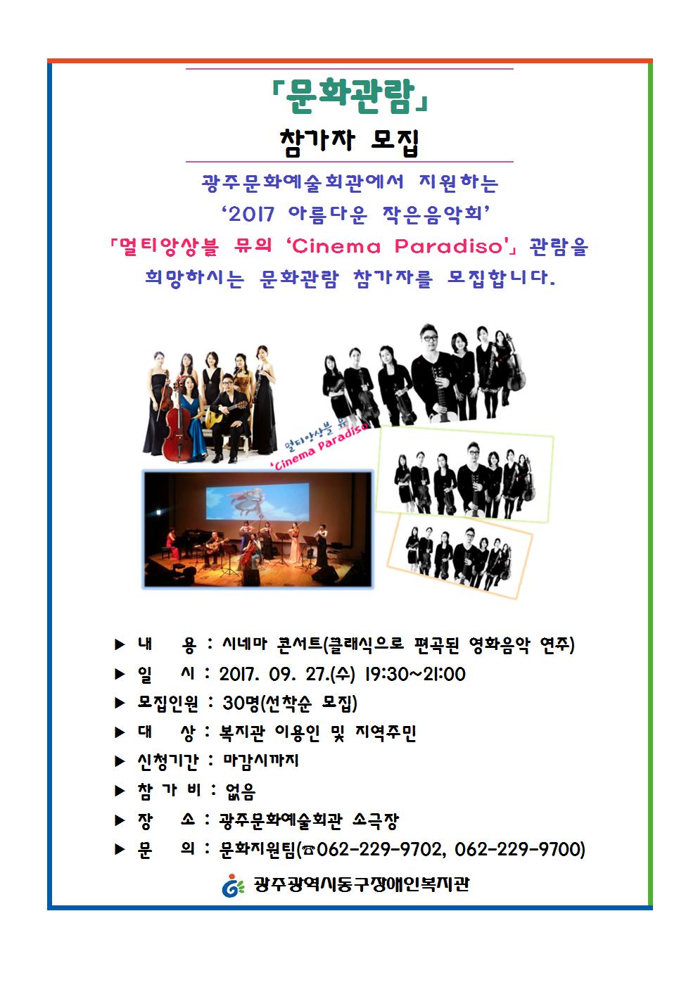 문화관람 참가자를 모집합니다. 게시글 작성정보 작성자 이소영 작성일 17-09-12 17:20 조회수 1,541 댓글수 0 목록 게시글 본문 첨부파일 1개 문화관람9월(10차)001.jpg (148.1K) 0회 다운로드 첨부일시 : 2017-09-12 17:20:00 이전글 <화동락> 9/26 화요일에 동구가 즐거워집니다. 17-09-21 다음글 2017년 광주광역시동구장애인복지관 집단급식소 식자재 납품 업체 모집 공고 17-09-08 댓글 0 등록된 댓글이 없습니다. 목록