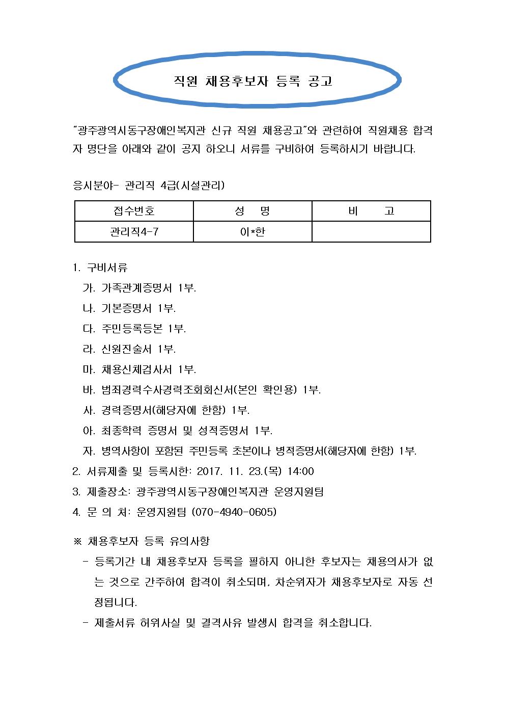 직원(시설관리) 채용예정자 공고 게시글 작성정보 작성자 김병진 작성일 17-11-21 14:12 조회수 1,356 댓글수 0 목록 게시글 본문 첨부파일 1개 직원 공고001.jpg (131.1K) 0회 다운로드 첨부일시 : 2017-11-21 14:12:00 이전글 2018년 동계실습 최종합격자 공지 17-11-28 다음글 직원(시설관리) 채용 서류전형 합격자 및 면접일정 공지 17-11-17 댓글 0 등록된 댓글이 없습니다. 목록