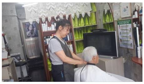 학동에서 오랫동안 미용실을 운영하시는 지혜미용실 박숙연 원장님의 자원봉사로 진행되었습니다.