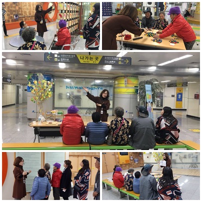 복지관에서는 11.14(화요일)에 이용인들과 함께 김대중컨벤션센터로 인권교육을 다녀왔습니다. 김대중컨벤션센터 역은 인권을 주제로 한 곳으로써 인권관련 그림이나 조형물들이 전시되어 있어 추운 날씨에도 불구하고 수업을 그곳에서 진행하게 되었습니다. 도입으로 게임을 통해 어르신들의 긴장을 풀어주시면서 흥미를 유발하셨고 가장 소중한 사람을 생각해보라는 강사님의 말씀에 복지관선생님을 말씀하시는 모습이 인상적이었습니다. 앞으로 더 열심히 해야겠어요^^