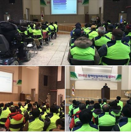 1월9일(화), 저희 복지관 올해 첫 이용인 간담회와 장애인 일자리 발대식을 함께 진행하였습니다. 김성환동구청장님께서도 오셔서 축사와 함께 일자리 발대식을 빛내주셨으며 관장님의 축사와 케잌 컷팅과 함께 시작되었습니다. 이용인 간담회에서는 운영·기획팀, 지역사례지원팀, 문화지원팀, 직업지원팀, 상담기능지원팀등 5개의 팀의 팀장님들이 올해 주요 추진사업과 구체적인 계획을 설명하셨고 특히 지역사례지원팀에서는 복지서비스들을 이용인들의 눈높이에 맞는 대화로 잘 설명하여 주셨습니다. 참여하여 자리를 빛내주신 우리 이용인분들에게 감사를 드리며 항상 이용자 여러분을 먼저 생각하는 동구장애인복지관이 되도록 노력하겠습니다.
