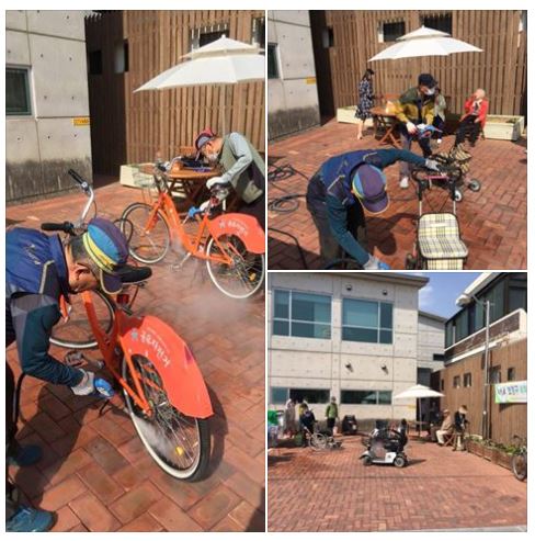 4월 17일 찾아가는 보장구세척소독서비스를 동명동주민센터와 연계하여 동명동커뮤니티센터에서 진행하였습니다. 지역주민분들께 동명동커뮤니티센터로 방문하셔서 전동휠체어, 전동스쿠터, 실버카, 자전거 등을 세척소독을 받으셨습니다. 주민센터에서 햇볕이 너무 따가워 파라솔과 테이블, 의자를 준비해주셨습니다. 덕분에 서비스를 잘 진행할 수 있었습니다. 다음주에는 계림2동에서 진행합니다. 많은 참여 부탁드립니다^^