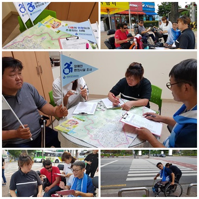 동구지역의 장애인 편의시설조사로 '장애인보행환경(횡단보도)조사 사전교육을 하고 있습니다.