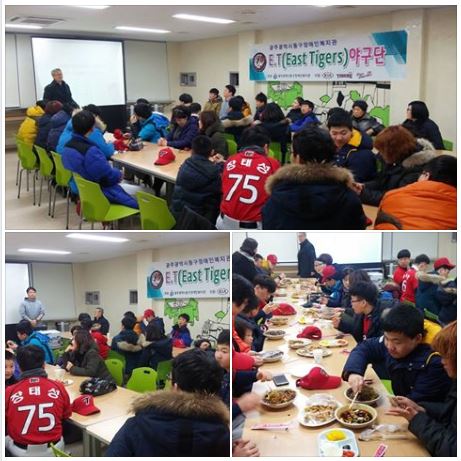 우리복지관에서는 2월 13일 토요일 12시부터 13시 30분까지 ET(East Tigers) 야구단 부모 간담회가 진행되었습니다. 관장님의 인사말씀, 감독님과 코치님의 소감을 들을 수 있는 시간이었고, 함께 점심을 먹는 시간을 가졌답니다.^^