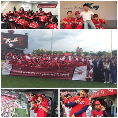 올해로 3년 차인 E.T야구동아리는 러브투게더와 기아타이거즈에서 지원을 하여 해년 마다 광주 스포츠의 꽃 기아챔피언스필드로 초정을 받아 TV에서도 볼 수 없었던 곳을 돌아보고, 선수들의 땀이 배어있던 덕아웃도 가보고 신나는 시간을 가졌습니다.