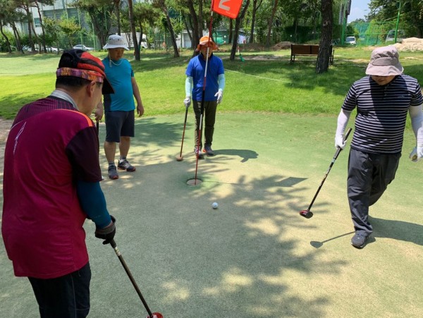 처음에는 공을 치기 보다는 땅을 먼저 치고 각 홀마다 10번 이상 공을 쳐야지 홀인을 하는 등 초보자 였지만 이제는 6번 이하로 홀인을 하고 몇 명의 참여자들은 개인적으로 골프장에 가서 연습을 하며 파크골프에 대해 흥미를 느끼고 열의가 높습니다.