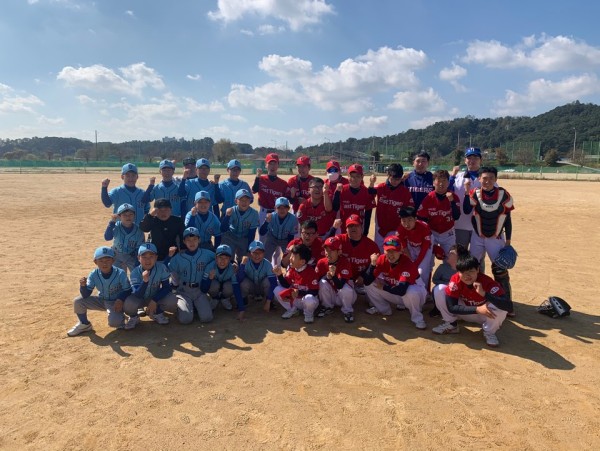 새로 만난 감독, 코치님들과 인사를 나누고 동구리틀야구단 선수 7명~8명이 E.T야구동아리 선수 훈련을 도와주기위해 자발적으로 자원봉사를 신청하여 매 회 훈련을 도와주고 있습니다.
