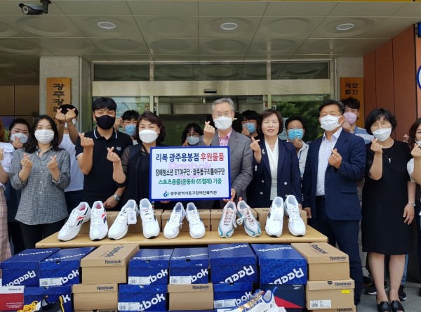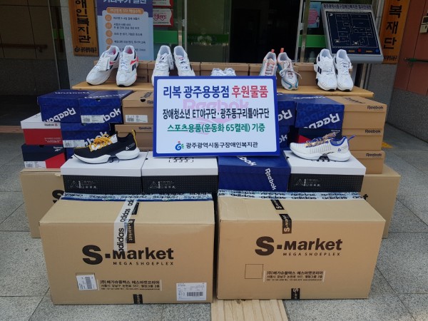 리복 광주용봉점(대표 홍혜란)에서 '장애청소년 ET야구단•광주동구리틀야구단'을 위해 스포츠용품(운동화 65켤레)을 기증해 주셨습니다.