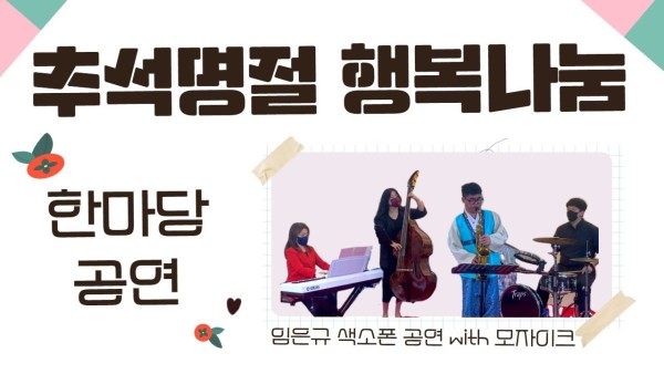 추석명절맞이 임은규님의 특별공연! 게시글 작성정보 작성자 기획홍보팀 작성일 21-09-24 09:27 조회수 533 댓글수 0 목록 게시글 본문 사진을 누르시면 해당영상으로 이동됩니다. 첨부파일 1개 maxresdefault (1).jpg (98.9K) 4회 다운로드 첨부일시 : 2021-09-24 09:27:00 이전글 전주로 떠난 온앤오프[발달장애인 취업자 자조모임] 21-10-22 다음글 이용인분들의 삼색송편체험! 21-09-24 댓글 0 등록된 댓글이 없습니다. 목록