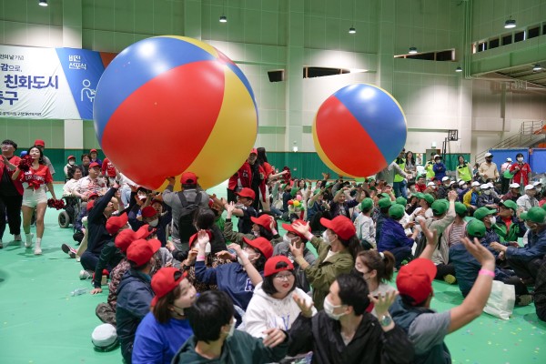 장애인친화도시 선포식 3부, 너울가지운동회 행사 사진입니다.