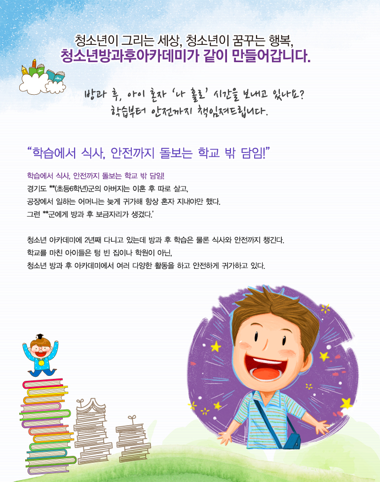 청소년이 그리는 세상, 청소년이 꿈꾸는 행복, 청소년방과후아카데미가 같이 만들어갑니다.