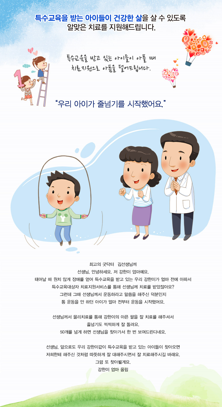 효과적인 교육을 위해 특수교육대상자의 다양한 치료를 지원합니다.