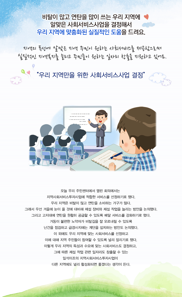 지역의 특성과 수요에 부합하는 사회서비스를 제공하여 지역복지를 활성화하고