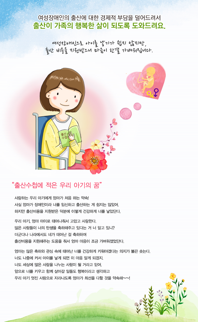 임신과 출산에 대한 비용이 추가로 발생하는 장애인여성에게 출산비용을 지원하여