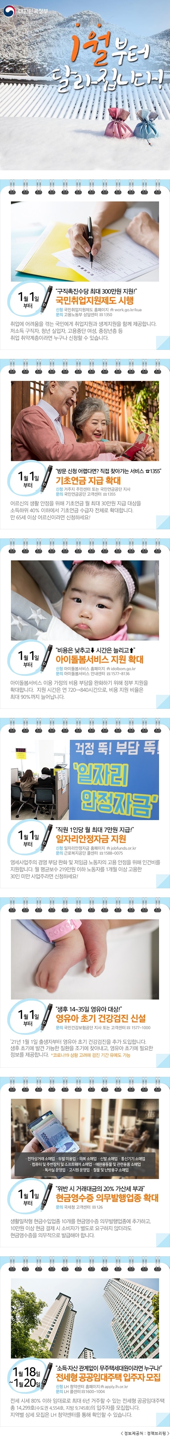 복지뉴스 1월부터 달라집니다(그림으로 보는 복지세상) 게시글 작성정보 작성자 기획홍보팀 작성일 21-01-14 09:24 조회수 1,071 댓글수 0 목록 게시글 본문 - 출처 : 복지로 - 바로가기 : http://bokjiro.go.kr/nwel/welfareinfo/livwelnews/news/retireveDataDetail.do?srchKeyCode=&searchWrd=&tmp1=&pageUnit=9&pageIndex=1&dataSid=6695636 첨부파일 1개 1월부터_달라집니다!_인포그래픽.jpg (832.0K) 0회 다운로드 첨부일시 : 2021-01-14 09:24:00 이전글 우리동네 장애인 편의시설 찾기 21-01-14 다음글 코로나19 3차 확산에 대응한 맞춤형 피해지원 대책 21-01-14 댓글 0 등록된 댓글이 없습니다. 목록