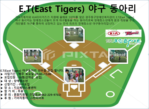 2021년 E.T야구동아리 참여자를 모집합니다. 게시글 작성정보 작성자 문화지원팀 작성일 21-03-03 11:06 조회수 1,778 댓글수 0 목록 게시글 본문 첨부파일 2개 페이스북홍보사진.png (348.3K) 1회 다운로드 첨부일시 : 2021-03-03 11:06:00 야구홍보 시안.png (618.7K) 1회 다운로드 첨부일시 : 2021-03-03 11:06:00 이전글 청소년발달장애인 방과후 활동서비스 대상자 모집 21-03-09 다음글 나눔으로 풍성해진 설명절 행복나눔 21-02-09 댓글 0 등록된 댓글이 없습니다. 목록