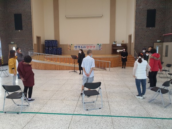 작년에 참여 하였던 학습자들과 올해 처음 참여하는 학습들이 하나의 소리를 내어 합창 연습에 임하고 있습니다.