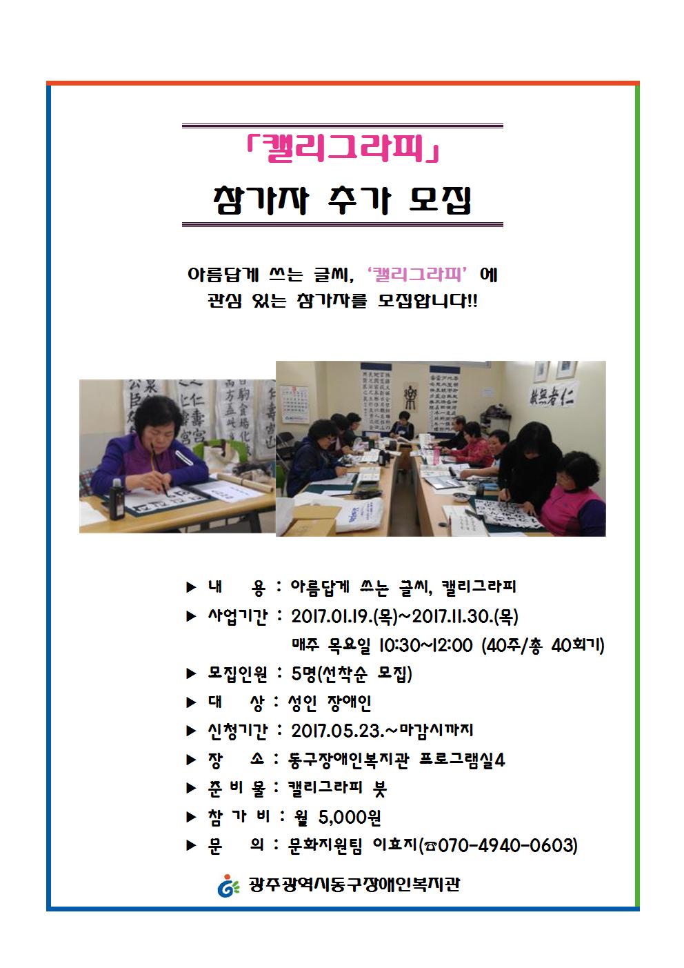 아름답게 쓰는 글씨, '캘리그라피'에 관심 있는 참가자를 모집합니다!!